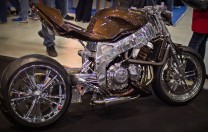 Fürs Auge ansehnlich posierte Selina Metzger freizügig bekleidet auf einer Harley Davidson. Auch eine Miss-Wahl gehört offenbar dazu. 4 Damen wollten „Miss Superbike“ werden. Die 24-jährige Sabina Trede aus Kaltenkirchen war die beste bzw. schönste. So entschied zumindest das Publikum durch seine Beifallsbekundung. Immerhin wird die Siegerin demnächst auf dem Cover einer Motorradzeitschrift des Veranstalters, des Huber-Verlags, zu finden sein. Vielleicht der Einstieg in die Model-Welt. Noch freizügiger ging es beim Bodypainting zu. Komisch nur, dass der Körper der Models so gut wie gar nicht bemalt war. Wer wollte konnte Benzinduft schnuppern. Wie auch im Vorjahr zeigte Henry Kroeze und sein Team sein Fahrkünste in einer Steilwandschau.
