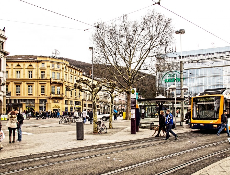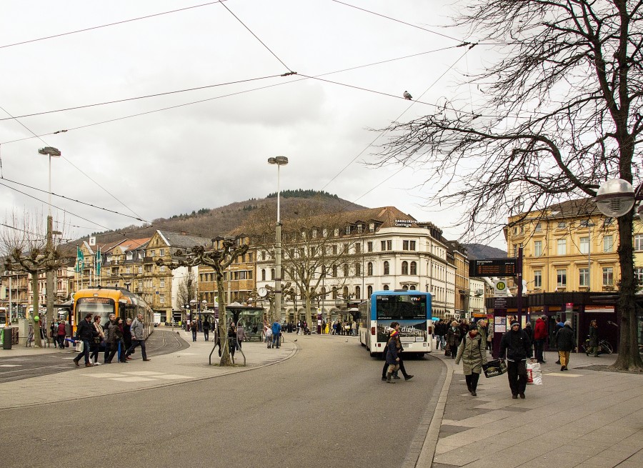 Heidelberg hat zwei zentrale Plätze, die ein beliebter Treffpunkt und die Knotenpunkte des öffentlichen Personennahverkehrs sind: der Vorplatz des Hauptbahnhofs und der Bismarckplatz. An der Stelle des heutigen Bismarckplatzes war früher ein Hafenbecken, das 1874 zugeschüttet wurde. Damals wurde auf dieser Fläche eine Gartenanlage angelegt, die bis heute Bestand hat. Zum 60. Geburtstag von Reichskanzler Bismarck, am 1.4.1875, erhielt die Anlage dessen Name. Zum Verkehrsknotenpunkt wurde der Bismarckplatz als die Straßenbahn, die bisher durch die Hauptstraße fuhr, aus dieser herausgenommen wurde. Seit dieser Zeit ist die Hauptstraße die längste Fußgängerzone Europas und Flaniermeile. Aufgewertet wurde der Platz durch die Ansiedlung des Kaufhof Galeria im Süden.
