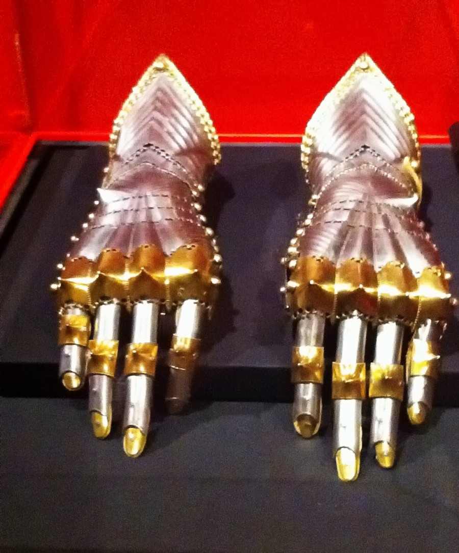 Das Kunsthistorische Museum Wien besitzt mehr als 50% des Weltbestands an Turnierausrüstungen. Die Rüstungen sind telweise 500 Jahre alt. Dass sie gehegt und gepflegt werden, sieht man. Sie sind in Top-Zustand. Wunderschöne Exponate aus der Gemäldegalerie, der Hofjagd- und Rüstkammer und der Kunstkammer sind bis November in Mannheim zu bestaunen. Die Ausstellung gliedert sich in drei Bereiche: Im ersten Bereich geht es um die Persönlichkeit Maximilians, um seine Familie und seine Kriegs-Aktivitäten, im zweiten Bereich um die höfische Jagd als Element im Spiel der Diplomatie und das höfische Turnier. Turniere hielten die Adligen zusammen, entwickelten und verstärkten ein Zusammengehörigkeitsgefühl. Bei den weit verstreuten Gebieten des Reichs ein durchaus wichtiger Faktor.