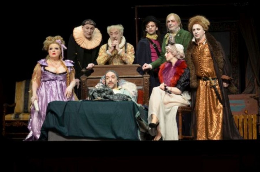 Viele Weggefährten fühlten sich angesprochen und machten Volpone mit kostbaren Geschenken ihre Aufwartung, um seiner Gunst geneigt zu bleiben. Der Kaufmann Corvino (Karsten Kramer ) warnt vor Ärzten, „weil sie manchmal doch helfen“. Die Kurtisane Canina (Franziska Troegner) beschwört Mosca, einzufädeln, dass Volpone sie noch vor seinem Ableben heiratet. Der Pfandleiher Corbaccio (Thomas Schendel) enterbt zeitweilig seinen Sohn in dem Glauben, dass er Volpone überlebt wodurch sich das Familienvermögen vermehren würde. „Der Ruhm Venedigs“, die schöne Colomba (Anja Gräfenstein), sitzt ahnungslos und mitfühlend am Bett des angeblich Sterbenden und wäre ohne die Hilfe von Capitano Leone (Jonathan Kutzner) ein Lustopfer geworden. Der Notar Voltore (Oliver Nitsche) verfasst, schreibt und siegelt das Testament umsonst. Durch den kunstvoll angelegten Handlungsverlauf und die Spielfreude der Komödianten des Schlosspark-Theaters, verführt das eigentlich dramatische Geschehen zur Heiterkeit.