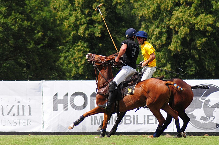 Die weitläufigen grünen Wiesen des Hugerlandshofs boten die ideale Bühne für die spektakulären Polo-Matches, bei denen Spieler auf majestätischen Pferden, darunter auch einige der extra für das Pferdepolo in Argentinien gezüchteten Tiere, in spannenden Wettkämpfen gegeneinander antraten. Diese besonderen Pferde, mit ihrem außergewöhnlichen Talent und ihrer geschmeidigen Bewegung, fügten sich harmonisch in die atemberaubende Landschaft ein. Der Hugerlandshof ist weit mehr als nur ein Austragungsort für sportliche Events – er ist ein Ort, an dem Tradition, Leidenschaft und Modernität verschmelzen. Ursprünglich eine Gaststätte, die im gesamten Münsterland für Feierlichkeiten jeder Art bekannt war, wurde der Hugerlandshof ab 1997 zu einer familiengeführten Reitanlage umgebaut und modernisiert.