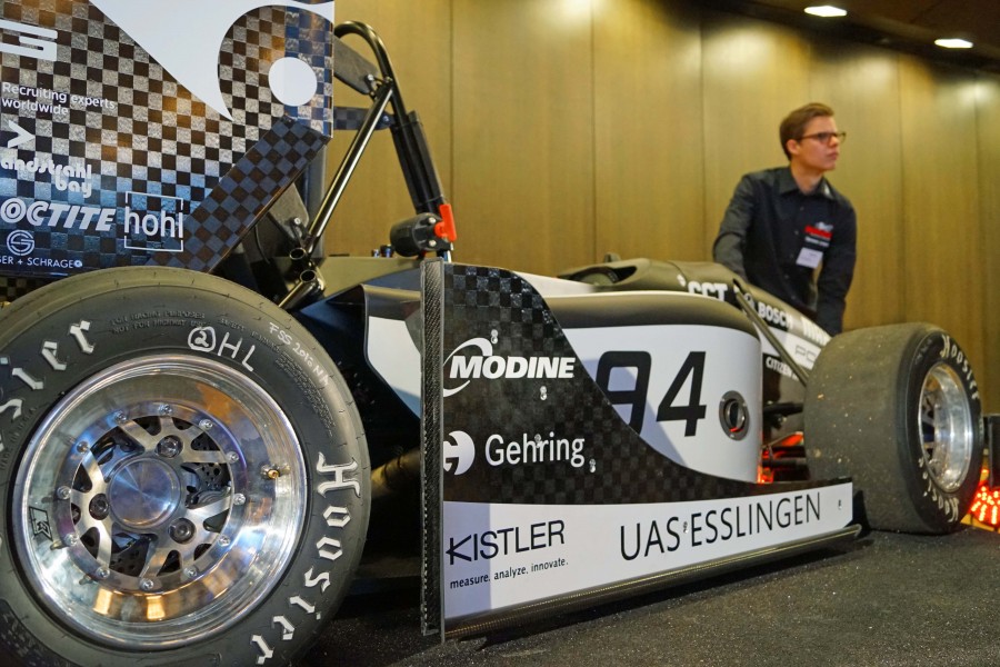 Der Esslinger Rennwagen blickt auf eine lange Teamarbeit zurück. Bereits vor zehn Jahren bauten Studenten der Hochschule den ersten Boliden. Immer wieder fanden sich Rennbegeisterte im Rennstall zusammen. Mit den Teilnahmen an internationalen Wettbewerben können die Studenten zum einen den Rennwagen auf Herz und Nieren testen und sich mit anderen Ingenieuren und mehreren Hochschulen messen. Die Rennsaison im vergangenen Jahr zählt zu den erfolgreichsten, seit die Hochschule Rennwagen baut. Christoph Lösle ist stolz: „Wir waren bei allen internationalen Rennen in den Top 5.“ Bei diesem Wettbewerb „Formula Student“ geht es nicht darum, den schnellsten Boliden auf der Strecke zu haben. „Die Parcours sind sehr kurvenreich und die Geraden sind nur sehr kurz. Oft zählt die Beschleunigung in den Kurven und auf kurzen Distanzen.“